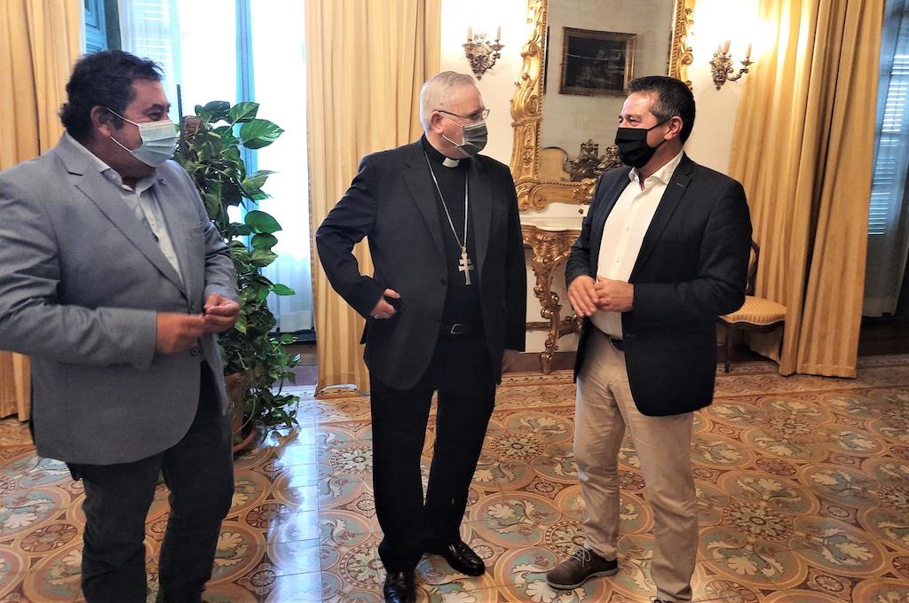 El alcalde de Alcantarilla, Joaquín Buendía, y el presidente de la Junta de Hermandades, José Sánchez del Cerro, mantuvieron este martes una reunión previa a la organización del encuentro con el obispo de la diócesis de Cartagena, José Manuel Lorca.