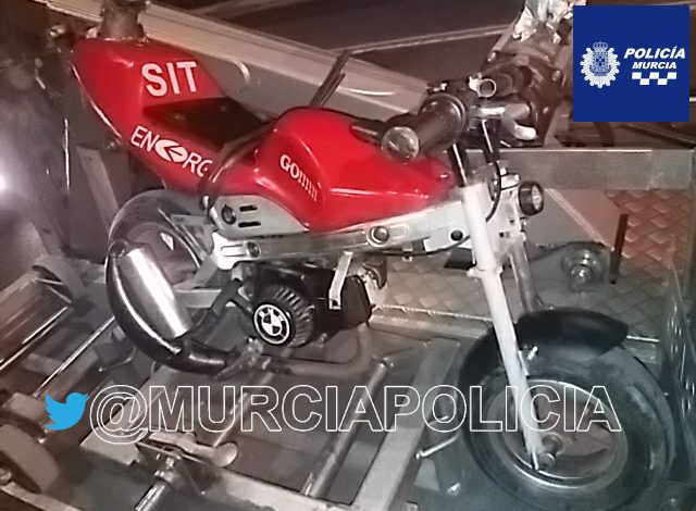 Agentes de la Policía Local de Murcia del cuartel de La Alberca interceptaron en la noche del jueves al conductor de una mini moto que circulaba por las calles de Rincón de Seca. Los policías formularon dos denuncias: por carecer el vehículo de autorización administrativa para circular y por carecer de seguro obligatorio de accidentes.