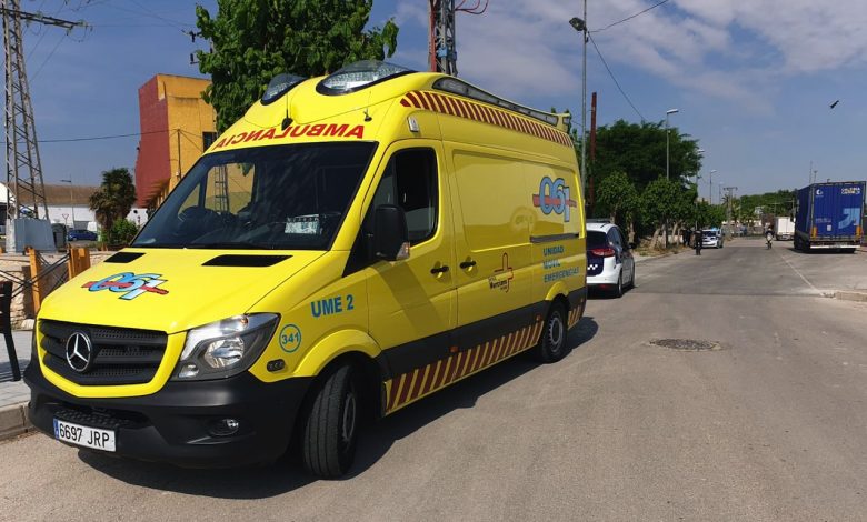 Personal sanitario ha atendido in situ a un trabajador de una empresa de transportes de Sangonera la Seca, que posteriormente ha sido trasladado al hospital La Arrixaca debido a la gravedad de sus heridas.