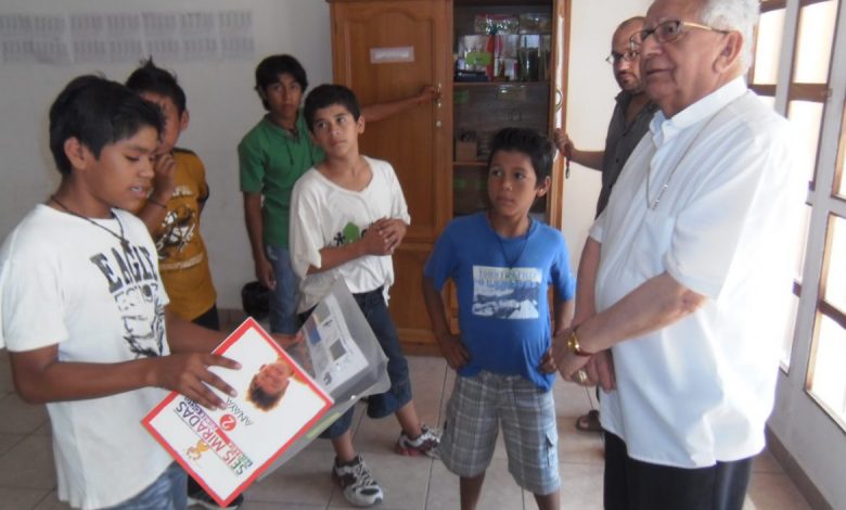 En la imagen, el cardenal Julio Terrazas (q.e.p.d.) cuando hace unos años visitó Oikía, nuestra casa de acogida a los niños en situación de calle
