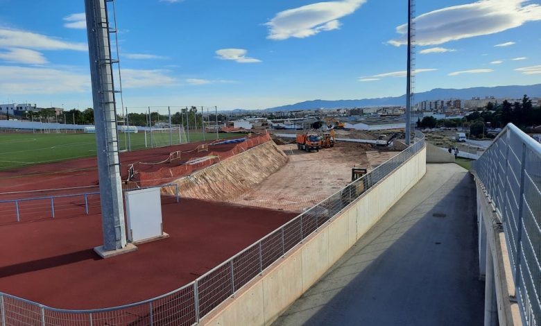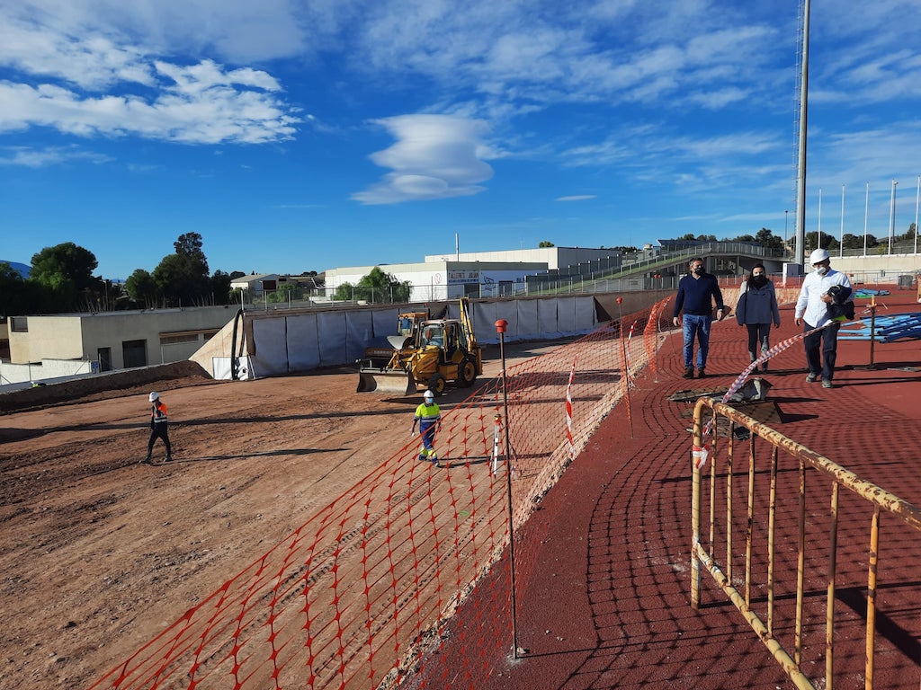 Las obras de acondicionamiento de la pista de atletismo del polideportivo municipal Manuel Ruiz Pérez, junto al Cabezo Verde, avanzan con la excavación, drenaje y compactación del terreno.