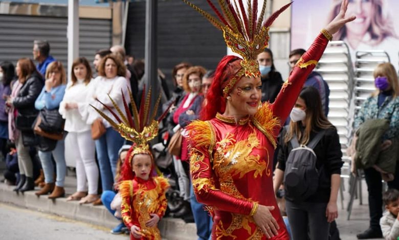 El carnaval ha vuelto a Alcantarilla tras dos años de ausencia por la pandemia. Aunque la lluvia amenazaba con aparecer, finalmente ha permitido que el desfile transcurra ‘seco’ y colorido. Desde media mañana ocho comparsas recorrieron la calle Mayor, desde la calle Término hasta la plaza de San Pedro, donde tuvo lugar el acto de entrega de premios a los participantes, por valor total de dos mil euros.