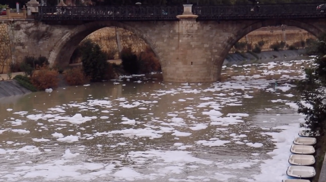 En Murcia se ha vuelto a repetir la estampa del río lleno de espuma a su paso por la ciudad, con un fuerte olor a detergente. Este hecho se sucede repetidamente durante las lluvias. Huermur ha anunciado que presentará denuncia por este hecho.