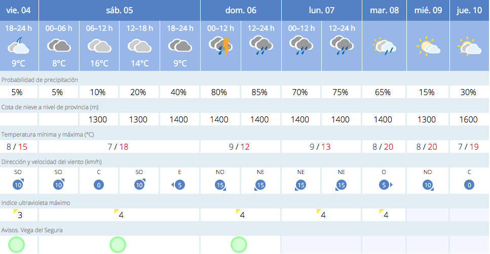 Predicción de la Aemet para estos días, publicada el viernes por la noche