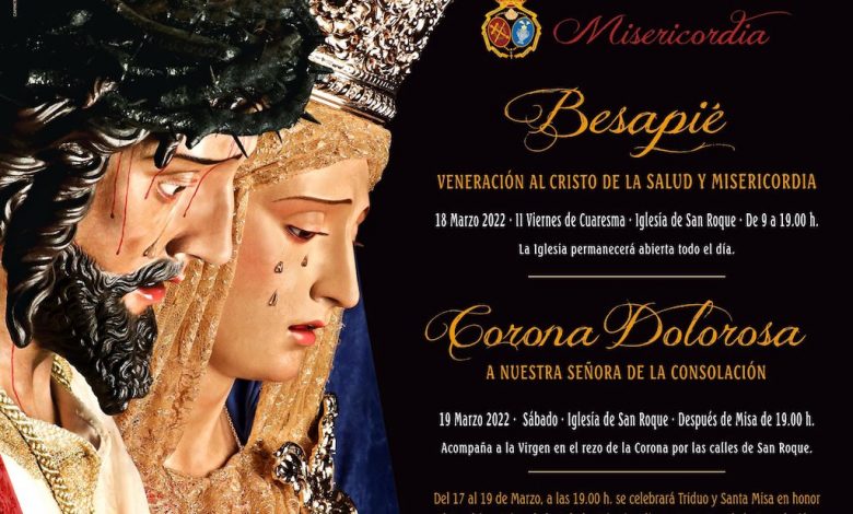 La Cofradía de la Misericordia de Alcantarilla celebra sus tradicionales cultos en honor al Santísimo Cristo de la Salud y Misericordia y Nuestra Señora de la Consolación en la parroquia de San Roque. El besapié será el acto central.