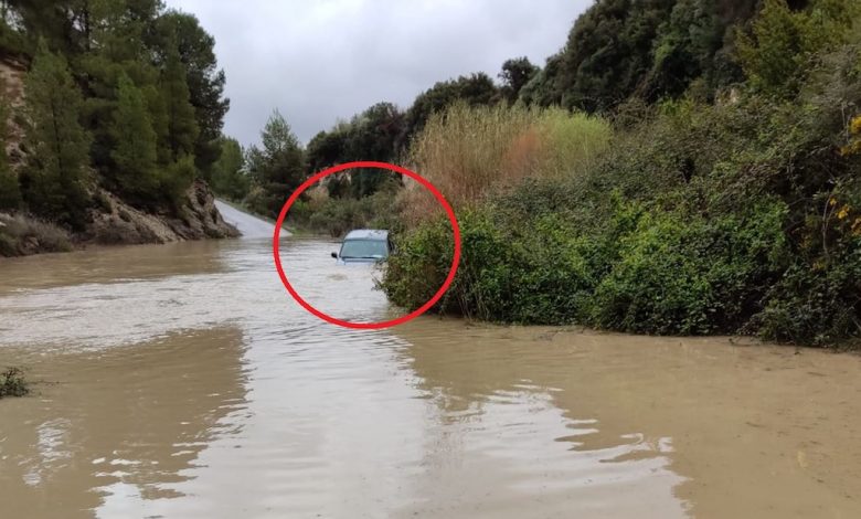 Rescatan a un conductor cuyo vehículo quedó atrapado en el río Alhárabe por la crecida por la lluvia