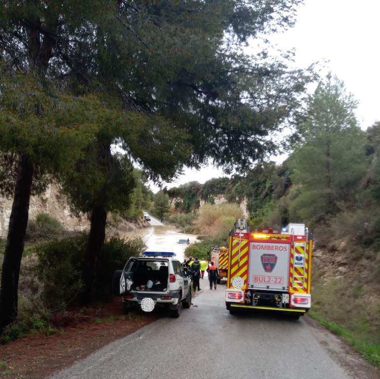Bomberos tuvieron que rescatar al conductor de un vehículo que quedó atrapado en el mismo en medio del río Alhárabe de Moratalla por una crecida del caudal, que cruza el camino del Gallo, que transitaba el conductor.