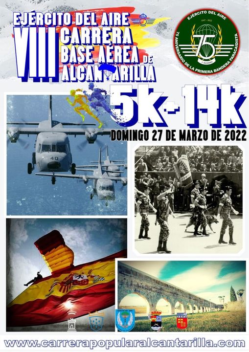 La VIII Carrera popular de la Base Aérea de Alcantarilla se celebra este domingo 27 de marzo a partir de las 10:00 horas para los participantes de la modalidad de 14 kilómetros y a las 10:15 para los de cinco kilómetros. La salida y la meta estará en la calle Mayor, informó el Ayuntamiento de Alcantarilla en un comunicado.