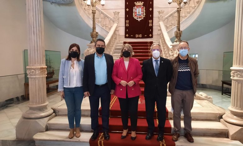 El alcalde de Alcantarilla, Joaquín Buendía, acompañó hoy al presidente de la Asociación de Amigos del Museo de la Huerta, Pedro Marín, en su visita al Ayuntamiento de Cartagena, donde fue recibido por la alcaldesa, Noelia Arroyo.