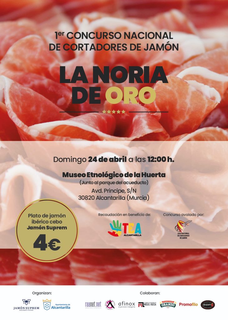 El primer concurso nacional de cortadores de jamón ‘La Noria de Oro’ se celebra este domingo, 24 de abril, en el Parque del Acueducto de Alcantarilla, junto al Museo de la Huerta, desde las 12:00 horas.