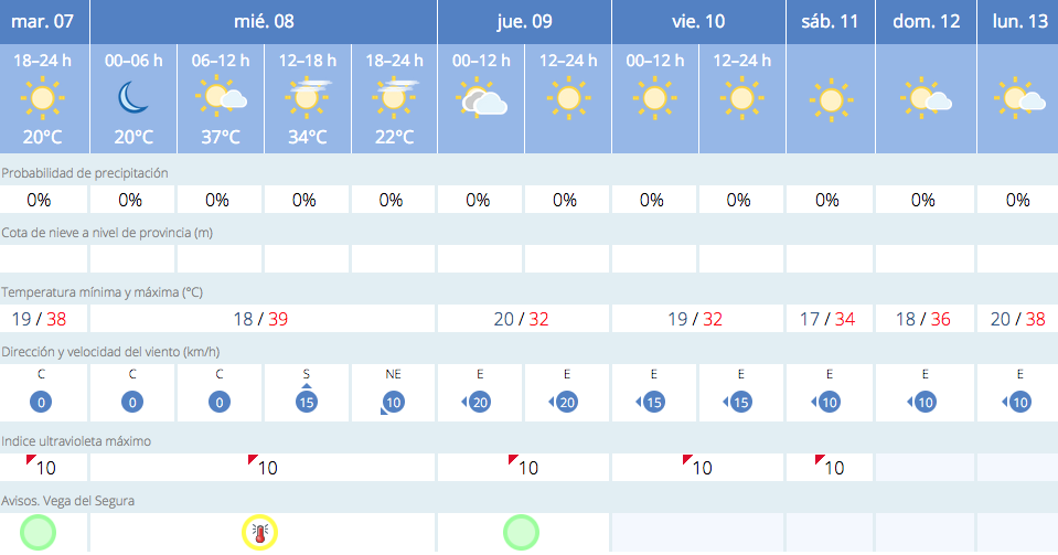 Alcantarilla puede llegar hoy miércoles a los 39 grados en plena alerta amarilla