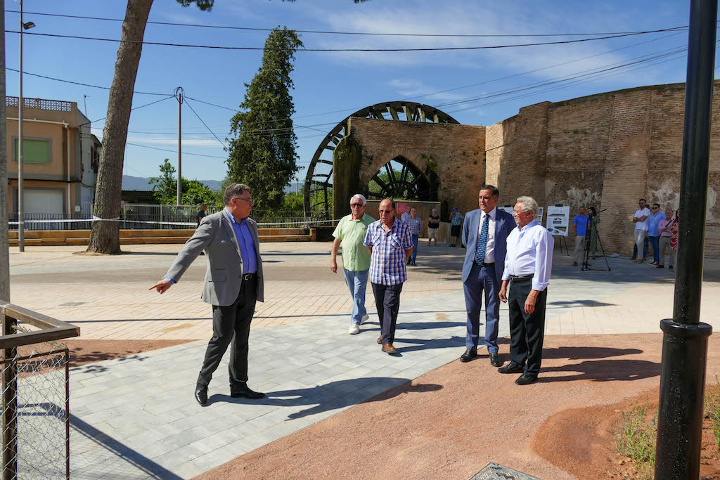 El entorno de la Rueda de La Ñora, emblemático monumento de la Huerta de Murcia, ya luce completamente remodelado tras unos trabajos de acondicionamiento y reordenación del espacio público para mejorar la calidad urbana y paisajística en el lugar. El alcalde de Murcia, José Antonio Serrano, acompañado por el concejal de Urbanismo y Transición Ecológica, Andrés Guerrero, visitaron este martes las obras de acondicionamiento, que han contado con un presupuesto de 323.000 euros.