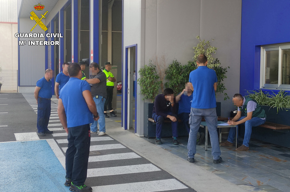 Los agentes, con algunos de los empleados detenidos. Foto: GUARDIA CIVIL