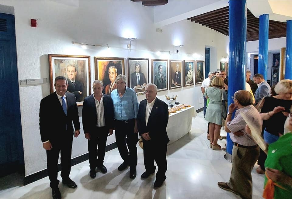 Los cuatro alcaldes de la democracia posan junto a los retratos de tres de ellos. De izda. a derecha: Joaquín Buendía (actual alcalde); Lázaro Mellado; Francisco Zapata y Pedro Manuel Toledo. Foto: AYTO. ALCANTARILLA