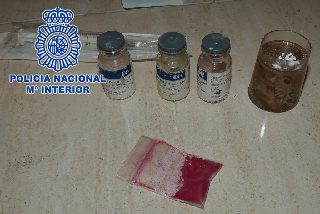 En el registro de la vivienda, realizado con la correspondiente autorización judicial, los agentes de la Policía Nacional encontraron un laboratorio con el instrumental y las instrucciones para la elaboración de ‘tusi’ o cocaína rosa; 72 gramos de cocaína; 1 gramo de cocaína rosa; 40 gramos de diversas sustancias para el corte de la droga; 110 plantas de marihuana que ya estaban siendo secadas; y 11 kilos de cogollos de marihuana.