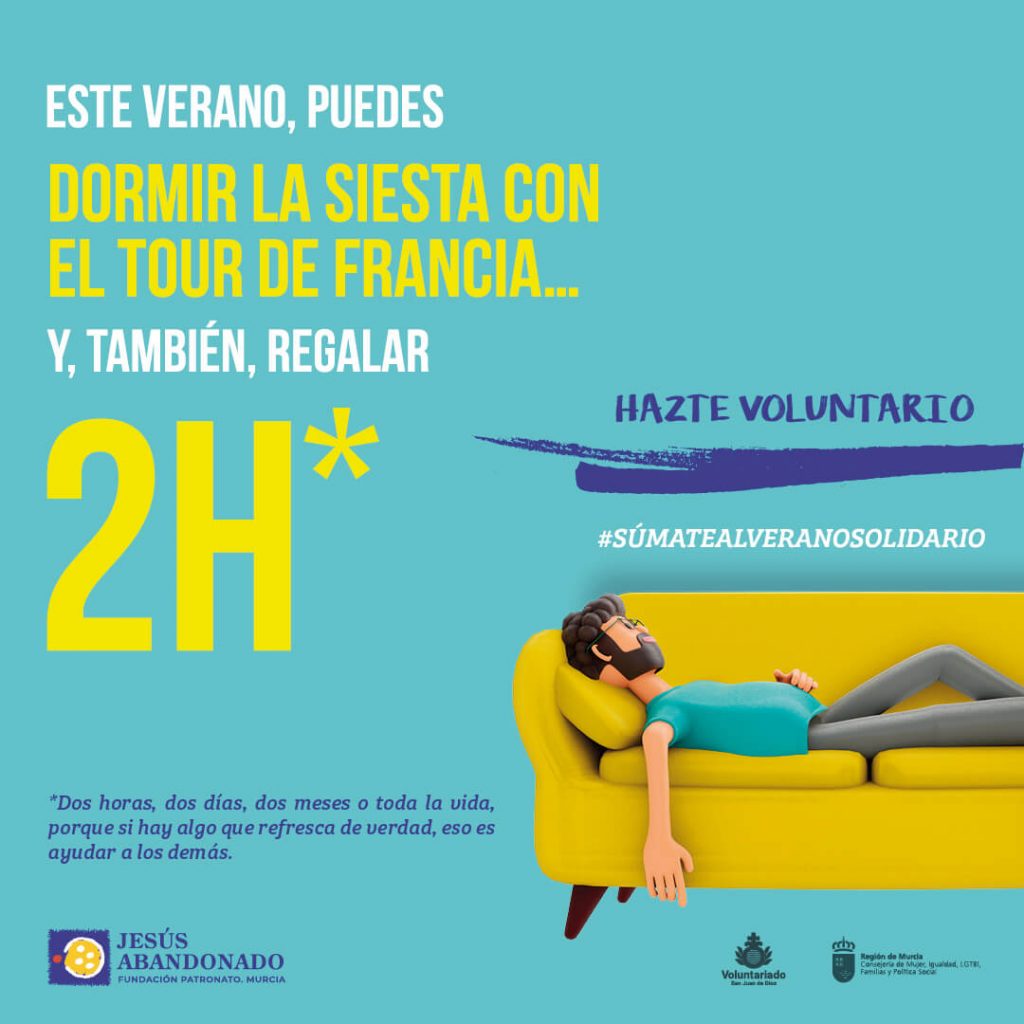 ‘Súmate al verano solidario’ es el lema con el que la fundación, que gestiona un centro de acogida en Murcia, propone a los futuros voluntarios “regalar dos horas” al día realizando labores en el comedor social, en el centro de acogida o en las áreas de lavandería, ropería y consigna, entre otras posibles labores. “Dos horas, dos días, dos meses o toda la vida, porque si hay algo que refresca de verdad es ayudar a los demás”, señala la fundación en un comunicado.