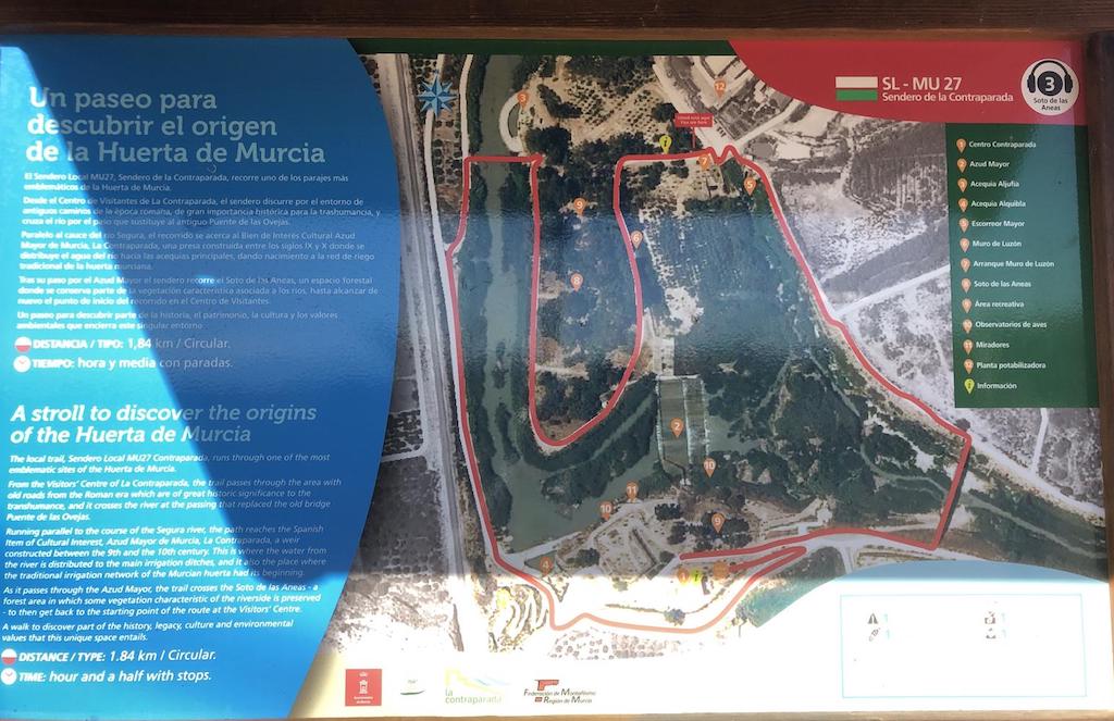 Andrés Guerrero ha explicado que «el sendero de la Contraparada es un recorrido circular de casi 2 kilómetros de longitud adaptado a todos los visitantes. El sendero está dotado de señalización direccional, así como de cartelería interpretativa sobre los valores patrimoniales y ambientales de la zona, y permite un recorrido completo por una de las zonas de mayor valor paisajístico, ambiental e histórico del municipio de Murcia, en la que es posible ver el azud Mayor y el nacimiento de las acequias Alquibla y Aljufía, la vegetación que da forma al bosque de ribera, y las especies que éste alberga. Todo ello en un paraje de gran tradición popular muy vinculado a la Huerta de Murcia. Además, el sendero presenta una baja dificultad técnica, se puede realizar a pie o en bicicleta y es el principal recorrido que se realiza en las actividades promovidas por el Centro de Visitantes de La Contraparada».