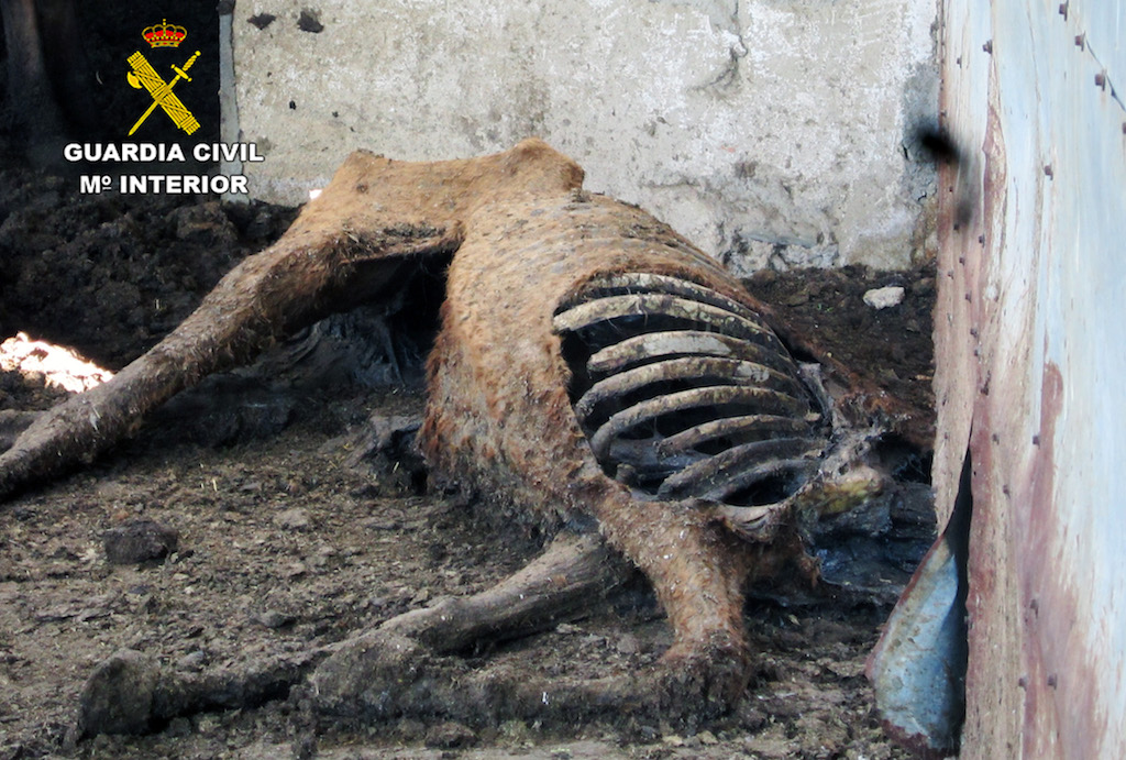 Uno de los animales en descomposición retirados de la finca. Foto: GUARDIA CIVIL