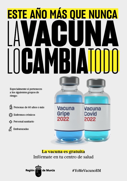 El Servicio Murciano de Salud (SMS) habilitará hoy, 4 de octubre, la cita web para solicitar la vacuna combinada contra la gripe y Covid. A partir del día 6 se administrará la vacunación antigripal junto con la dosis de recuerdo frente al Covid 19 a los mayores de 60 años, grupos de riesgo y grupos prioritarios (embarazadas, personal esencial, enfermos crónicos o con patologías de riesgo y cuidadores domiciliarios o convivientes de personas de riesgo o mayores). Junto a este colectivo, también están llamados a vacunarse frente a ambas infecciones a partir del mismo día los trabajadores sanitarios. Esta vacunación será en los centros de salud y puestos de vacunación habituales.