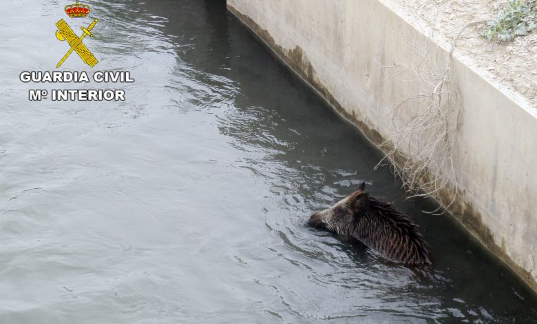 Agentes del Seprona (Servicio de Protección de la Naturaleza de la Guardia Civil), ayudados por vecinos, consiguieron sacar de un canal de riego profundo a un ejemplar hembra de jabalí (cuyo nombre científico es Sus scrofa) que llevaba dos días sin poder salir escalando las empinadas paredes de hormigón del canal de riego en un paraje de la diputación de Río, en el término municipal de Lorca.