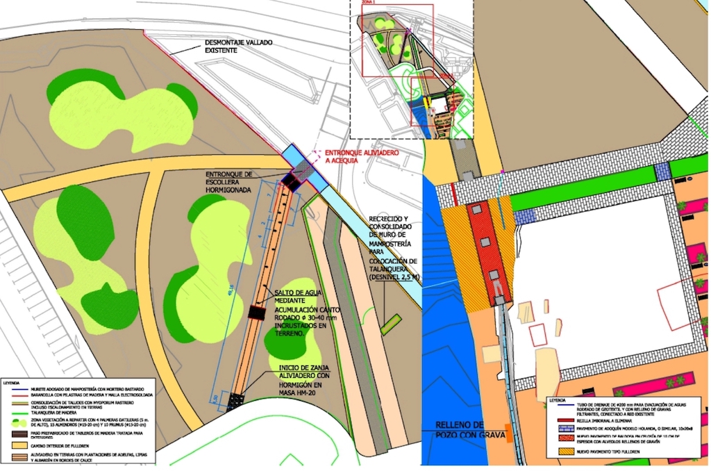 La tercera y última fase de las obras del Parque del Acueducto también está incluida en esta actuación y consiste en rehabilitar el muro de mampostería en el que se apoya la nueva canalización que conecta el acueducto con el pozo de registro de agua, construir un canal hacia la acequia del Turbedal y la protección de la antigua Ceña, además de la mejora del pavimento y el ajardinamiento del entorno.