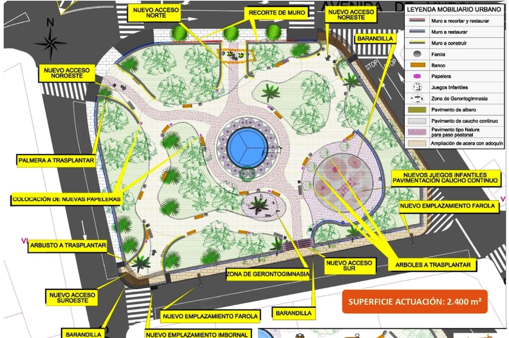 Las obras suponen la renovación integral de la plaza, del pavimento, del mobiliario urbano y de la zona de juegos infantiles, además de mejorar la accesibilidad con la ampliación de las aceras que lo rodean y la eliminación de bordillos y otros obstáculos. También está previsto construir una nueva jardinera de madera en el centro, plantar especies autóctonas e instalar una red de riego para mantener la vegetación.