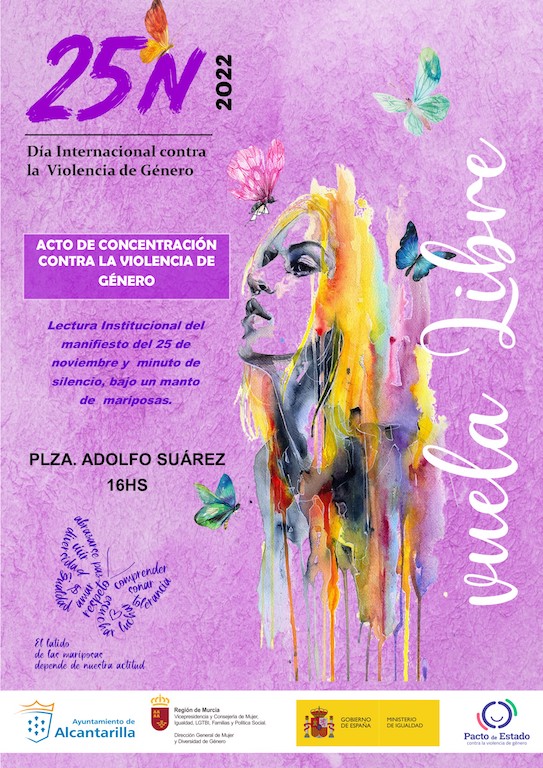 Las mariposas serán el motivo central del acto de concentración contra la violencia de género, el próximo viernes, 25 de noviembre, a las 16:00 horas en la plaza Adolfo Suárez, donde se leerá el manifiesto y se guardará un minuto de silencio por las víctimas, bajo un manto de mariposas, instaladas en el centro de la plaza. Además, habrá una actuación musical de la escuela de música municipal.