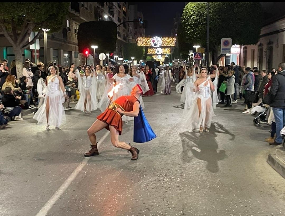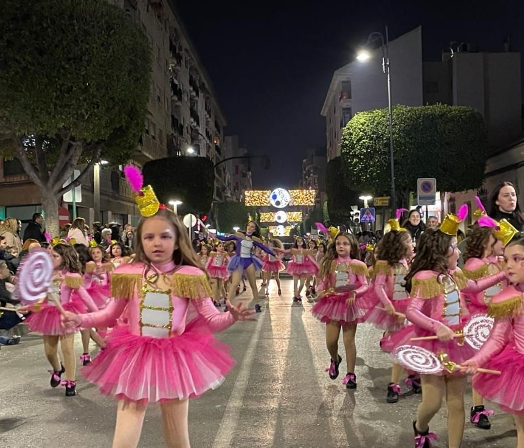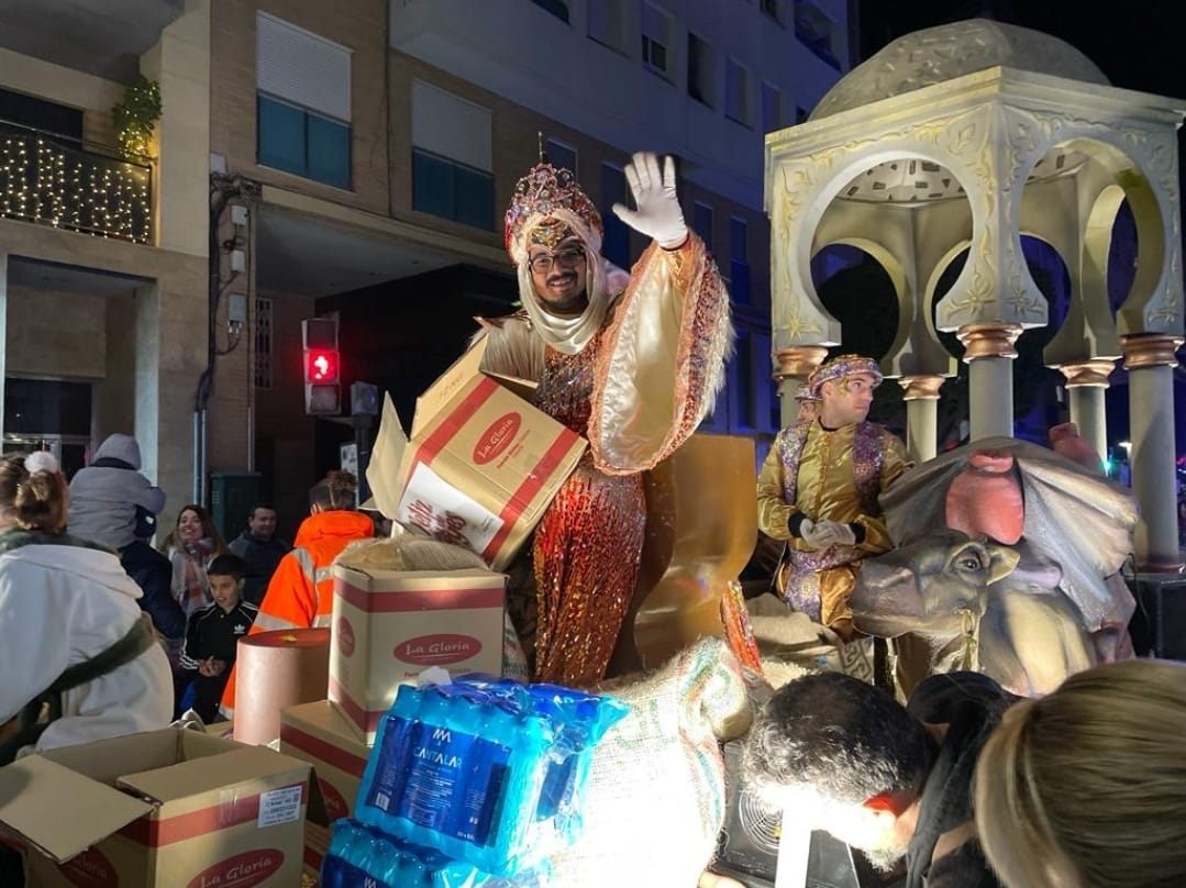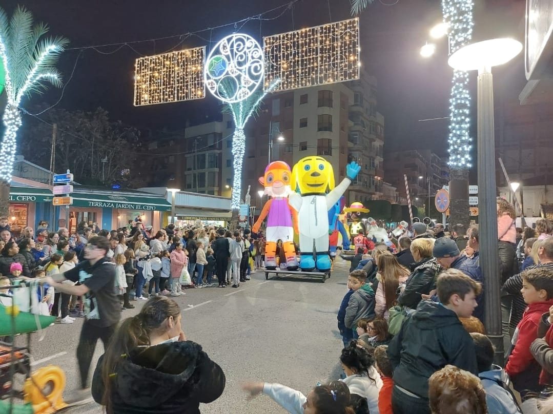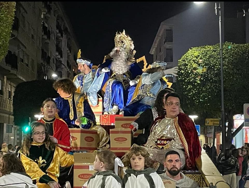 Por la tarde, la gran Cabalgata de Reyes Magos salía de la plaza de España, frente a Hero, para finalizar en la calle Término, junto a la rotonda del Aviocar de la Base Aérea, tras recorrer toda la calle Mayor de Alcantarilla.