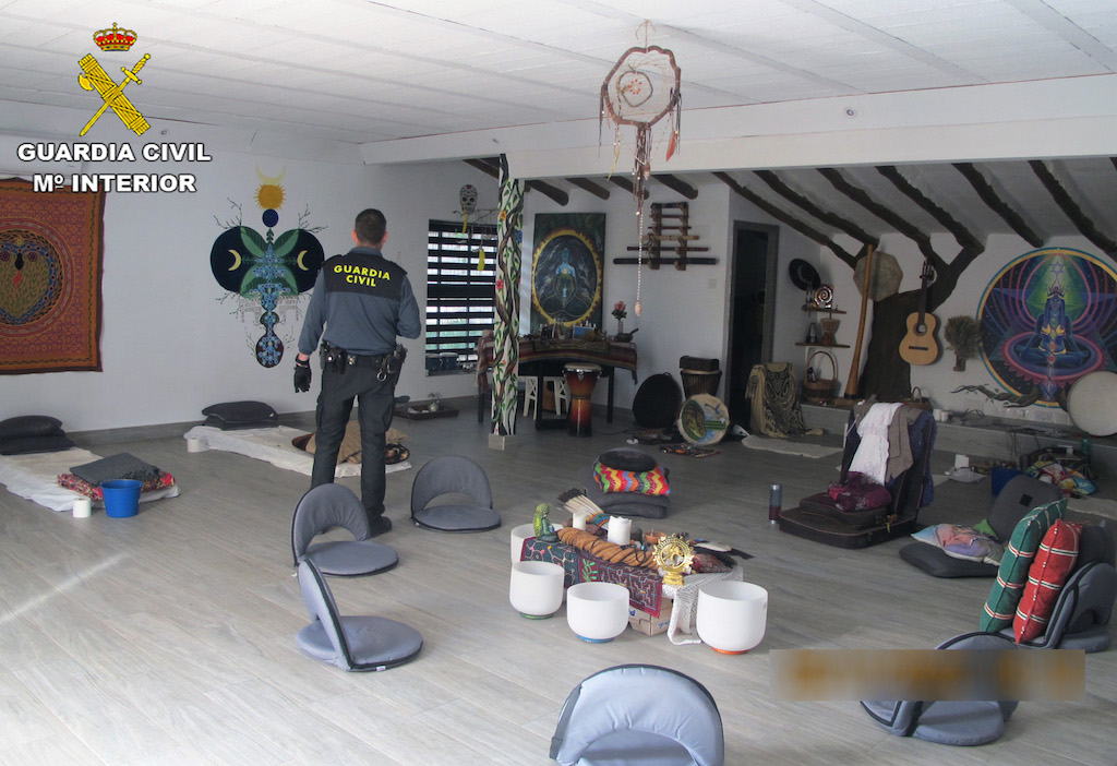 Los agentes de la Guardia Civil registraron con autorización judicial la casa de campo ubicada y se encontraron con la celebración de un retiro de ayahuasca. Una de las salas de la vivienda estaba acondicionada con siete camastros y dos sillones donde los chamanes estaban dirigiendo el ritual y la ingesta de sustancias alucinógenas de siete personas de varias nacionalidades.