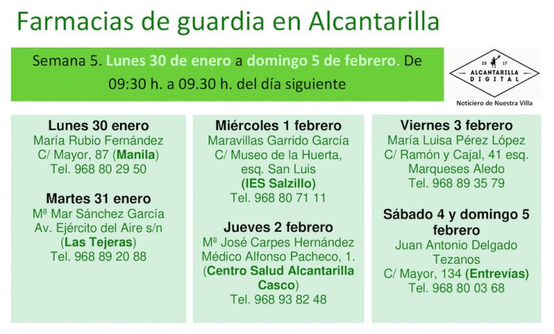 Farmacias de guardia en Alcantarilla del 30 de enero al 5 de febrero
