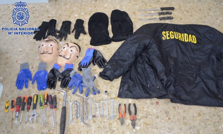 La operación se desarrollaba en Molina de Segura después de que un testigo informara al 091 de que había observado a dos hombres en un vehículo trasladando utensilios para el cultivo de marihuana. La Policía Nacional montó un dispositivo con varias unidades que consiguieron localizar el vehículo. Tras proceder a la identificación de los ocupantes y registrar el vehículo, hallaron en su interior dos kilos de cogollos de marihuana, útiles para el cultivo de esta planta, dos pasamontañas, diversas herramientas, tres cuchillos de cocina de grandes dimensiones y cinco pares de guantes. Además, se encontraron dos caretas como las utilizadas en la serie de televisión ‘La Casa de Papel’, que recrea en la ficción el asalto al Banco de España, y que la Policía cree que podrían haber sido utilizadas, junto con las armas y las herramientas, en otro tipo de delitos.