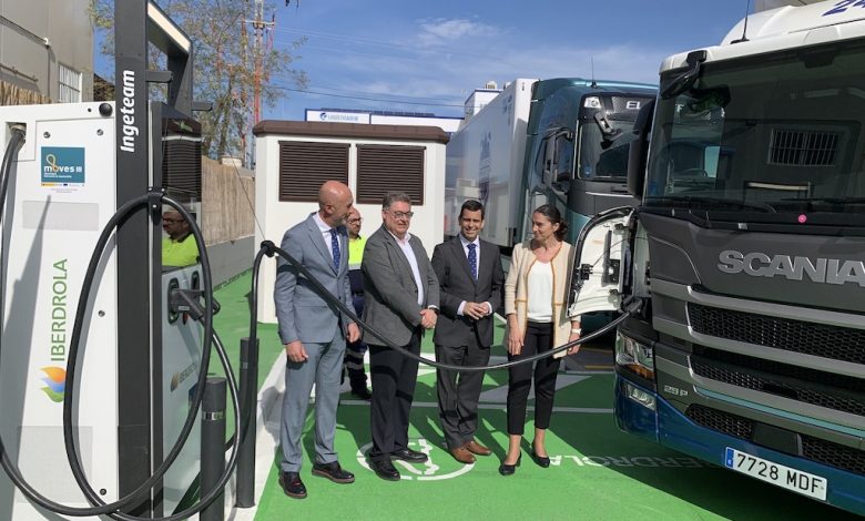 Las empresas Disfrimur e Iberdrola han puesto en servicio en Sangonera la Seca la primera electrolinera de uso público de España para camiones que forma parte del primer corredor de estaciones de recarga específicas para camiones eléctricos de España.