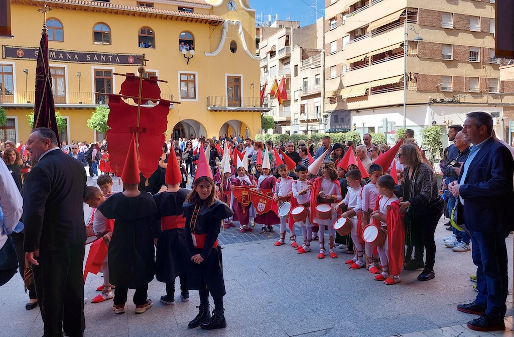 En la procesión están representadas todas las hermandades y cofradías pasionarias de la ciudad, la Policía Local y la Corporación Municipal, encabezada por el alcalde infantil, que este año ha sido Andrés Barreras Cascales, del colegio Jara Carrillo.
