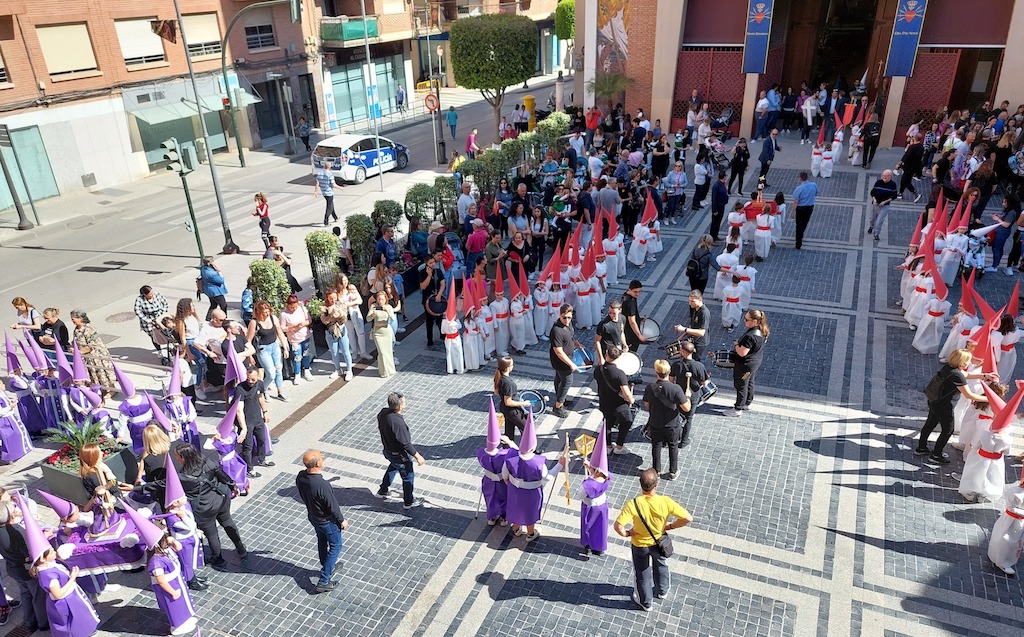 Más de 1.300 alumnos de los colegios de Alcantarilla participaron este viernes por la mañana en la procesión infantil del Viernes de Dolores, desde la iglesia de Nuestra Señora de la Asunción, en Campoamor, hasta la iglesia de San Pedro