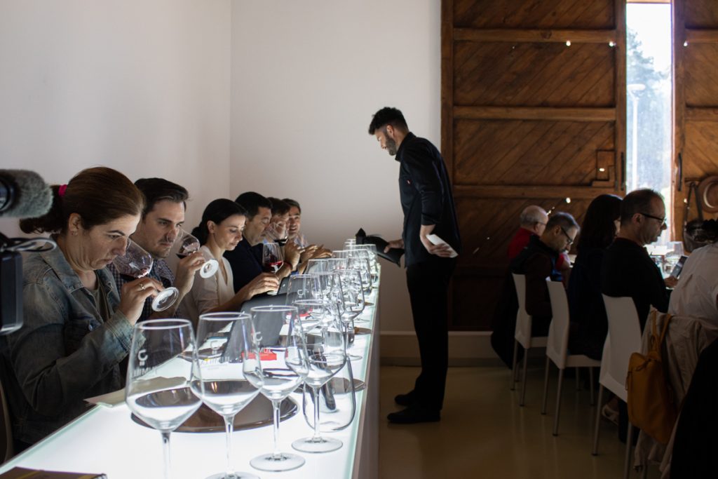 Los sumilleres y catadores prueban los vinos en cata a ciegas. Foto: DOP JUMILLA