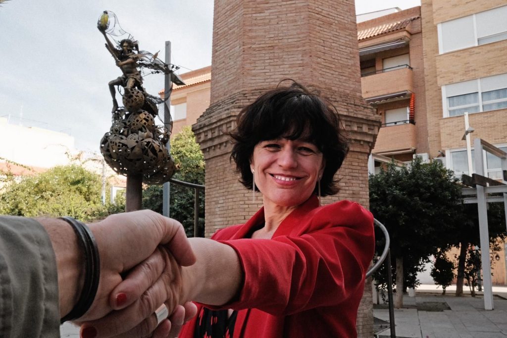 Lara Hernández, junto al monumento a la Bruja, en Cayitas. Foto: PSOE