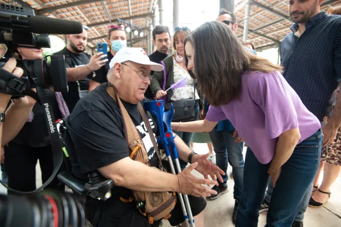 Riquelme aborda a la ministra Belarra tras su mitin para exigirle las indemnizaciones de la talidomida