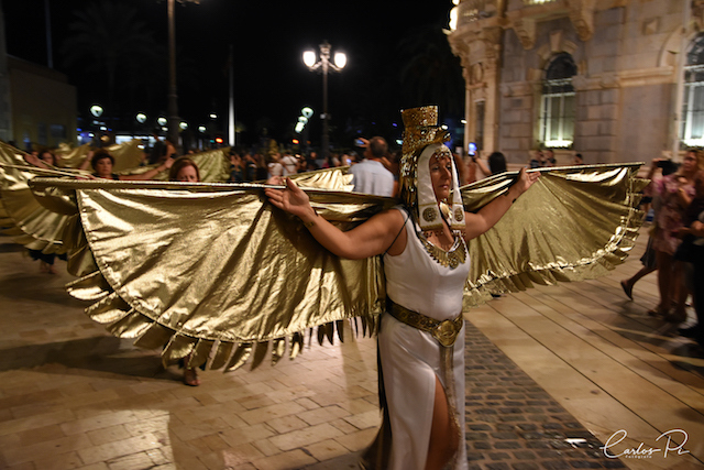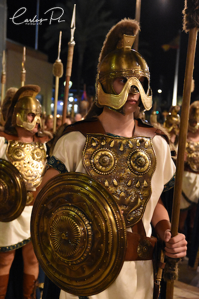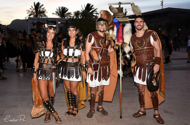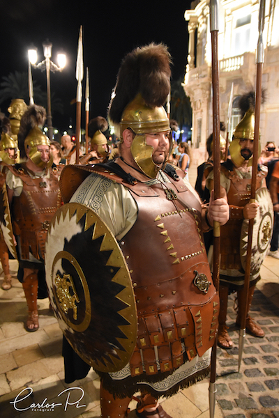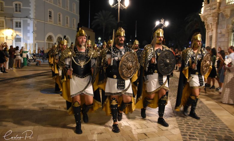 Las fiestas de recreación histórica de Carthagineses y Romanos ya están en todo su esplendor en Cartagena. Este jueves tenía lugar el desfile de las tropas carthaginesas en su marcha a la conquista de Roma atravesando los Alpes y capitaneados por el general Aníbal. Entre los actos, el desembarco de la armada carthaginesa y la contratación de mercenarios, incluidas las arengas de los generales y los conjuros de los druidas. En total participaron 25 tropas que tras desfilar se integraron en el público para dar al escenario cartagenero un ambiente histórico de ciudad.