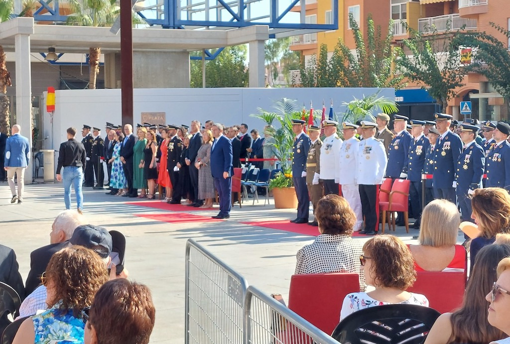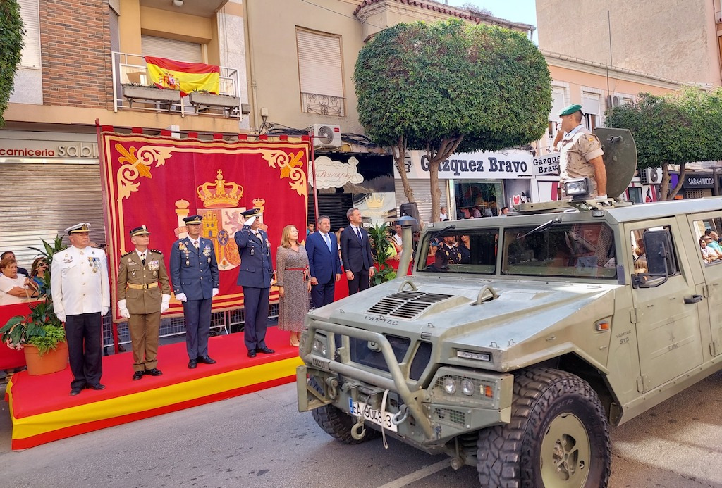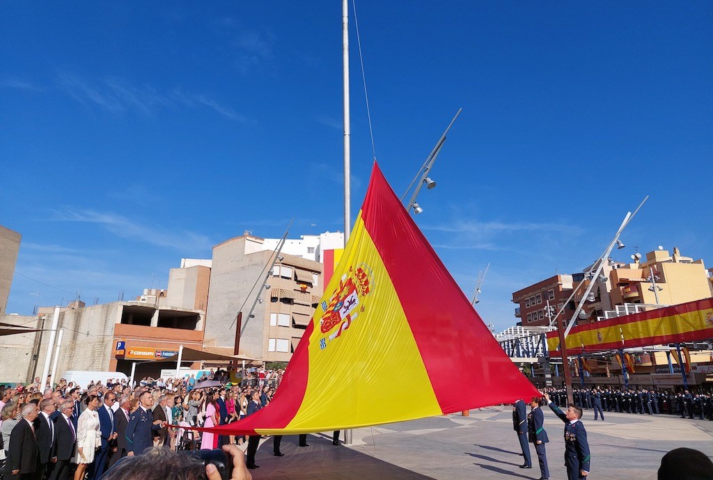 El acto está organizado por el Ayuntamiento y la Base Aérea de Alcantarilla y ha consistido en el izado de una bandera de 54 metros cuadrados sobre un mástil de 25 metros de altura, mientras sonaba el Himno Nacional, antes de la jura para personal civil. También ha habido un homenaje a los caídos por España, un desfile militar por la calle Mayor y un salto de la Patrulla Acrobática Paracaidista del Ejército del Aire (PAPEA).