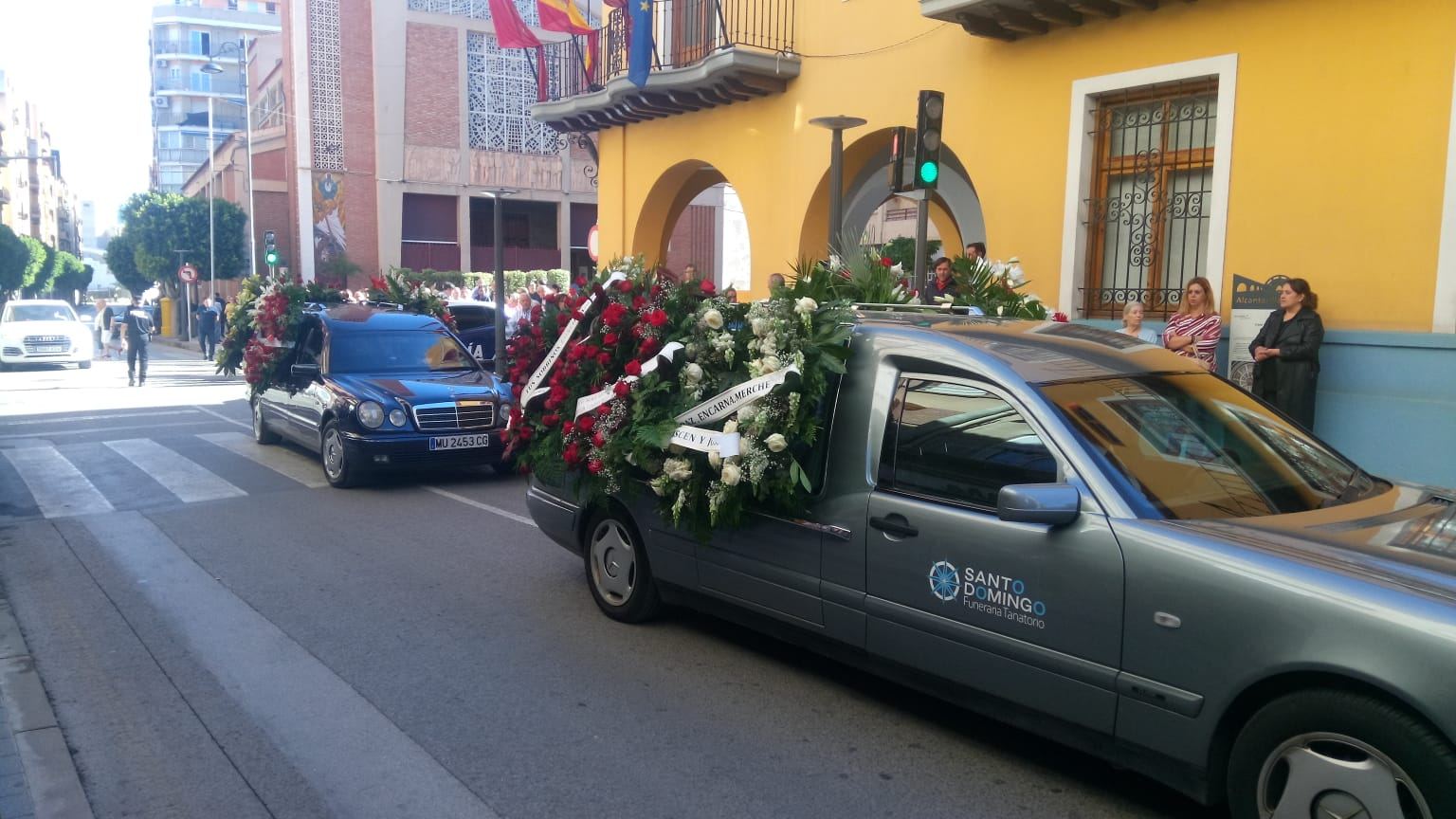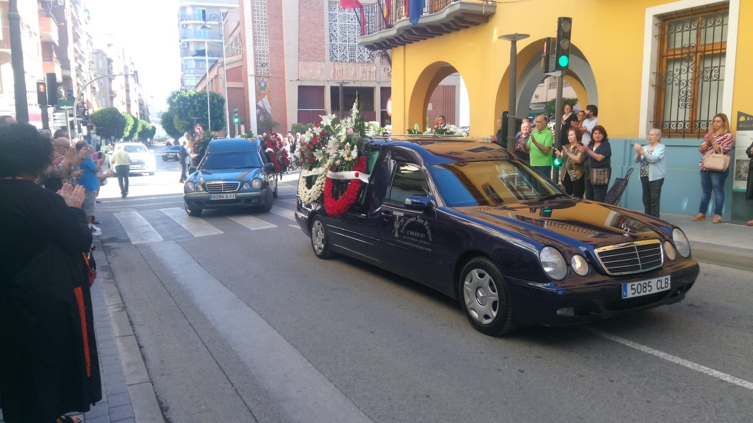 El féretro abandonaba el Ayuntamiento entre aplausos y la música de un pasodoble. Su pertenencia al PSOE, a la peña festeja Baco y a la Cofradía del Cristo de la Buena Muerte han estado presentes en todo momento. Del Ayuntamiento partía la comitiva con cuatro coches fúnebres, vehículos de la Policía Local y los de los familiares.