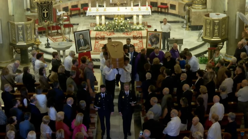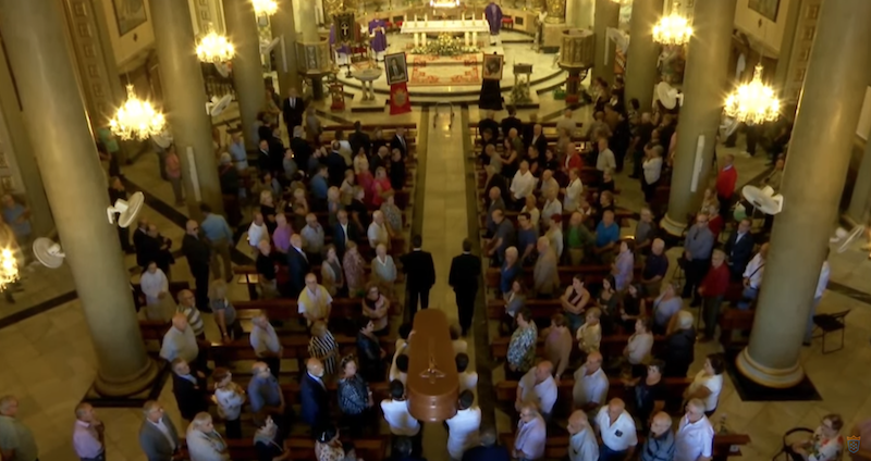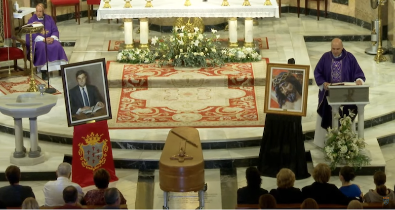 La misa de copare insepulto tuvo lugar en la iglesia parroquial de Nuestra Señora de la Asunción, en Campoamor, concelebrada por tres sacerdotes. El templo se llenó de amigos y familiares y la ceremonia fue transmitida en directo en el canal del Ayuntamiento en YouTube (ver en este enlace).