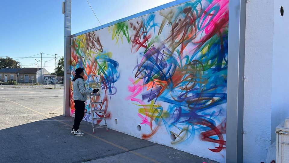 Pintura a pie de calle en el Octubre Joven de Alcantarilla