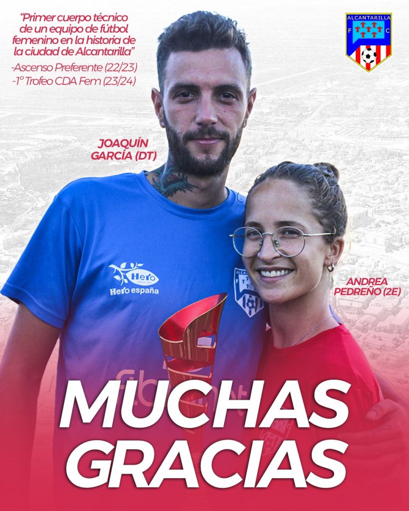 Joaquín García y Andrea Pedreño abandonan la dirección del equipo. El Preferente femenino ha empezado la liga con cuatro derrotas consecutivas, resultado que contrasta con el de la temporada anterior en que el equipo consiguió el ascenso desde Primera hasta Preferente con este mismo cuadro técnico.