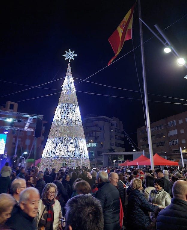 El encendido de la iluminación del árbol de 17 metros de altura instalado en la plaza Adolfo Suárez marcó en la tarde del viernes el inicio de la celebración navideña en Alcantarilla. También anoche se encendía la iluminación especial en varias calles y plazas de la ciudad, que este año está formada por 125.000 bombillas led.