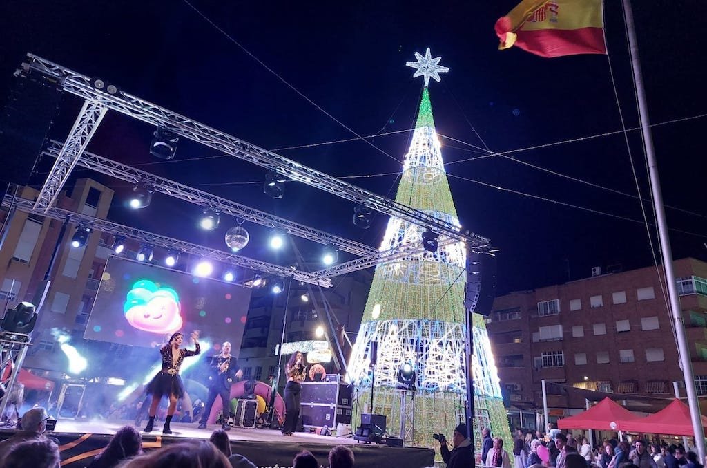 El botón de encendido lo pulsó el niño que ganó el sorteo entre los asistentes a la fiesta infantil previa, con música, talleres y bailes. También actuó el Grupo de Coros y Danzas del Museo de la Huerta y del grupo de éxitos del pop ‘La década de tu vida’.