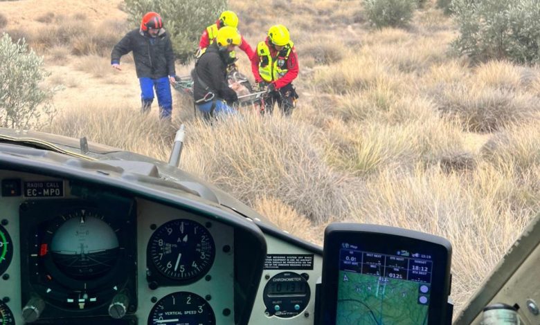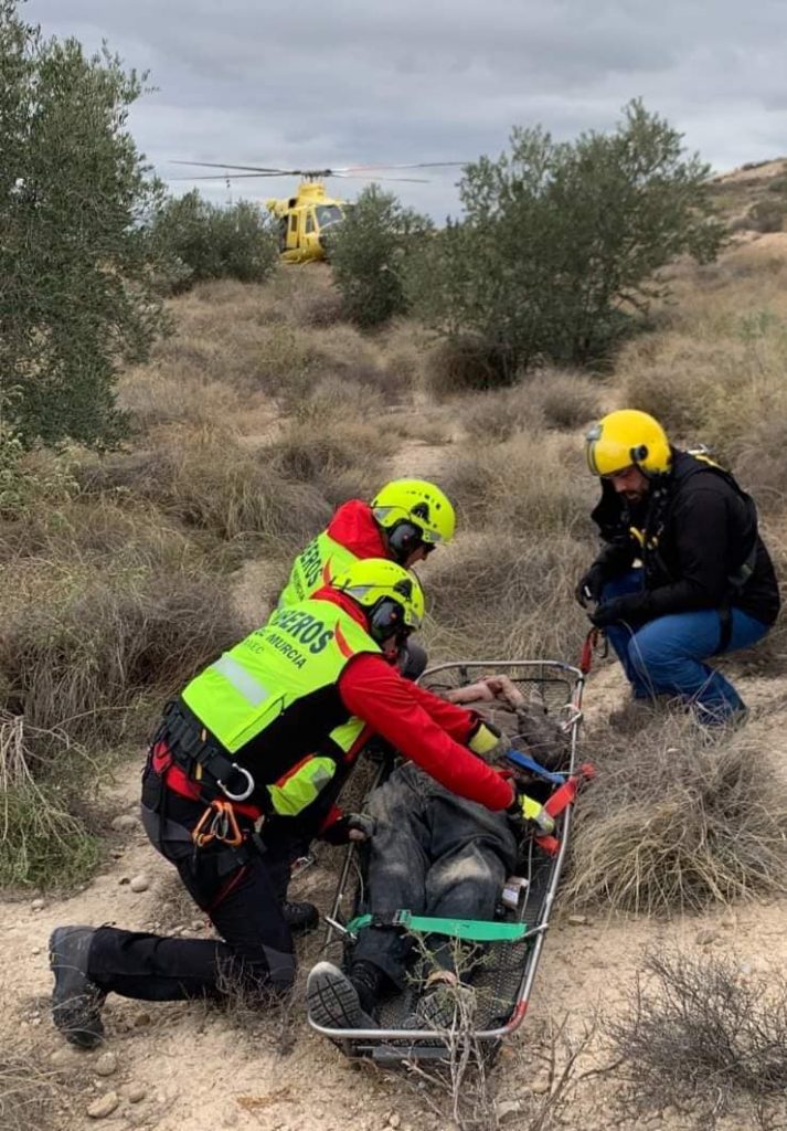 Finalmente fue este grupo de bomberos a bordo del helicóptero quienes consiguieron localizar desde el aire al vecino desaparecido, informando de su localización exacta. Eran las 13:17 h. Tras su rescate, fue trasladado en helicóptero al hospital Virgen de la Arrixaca. El vecino, de 68 años de edad, se encontraba en general bien y se le aplicó suero de hidratación.