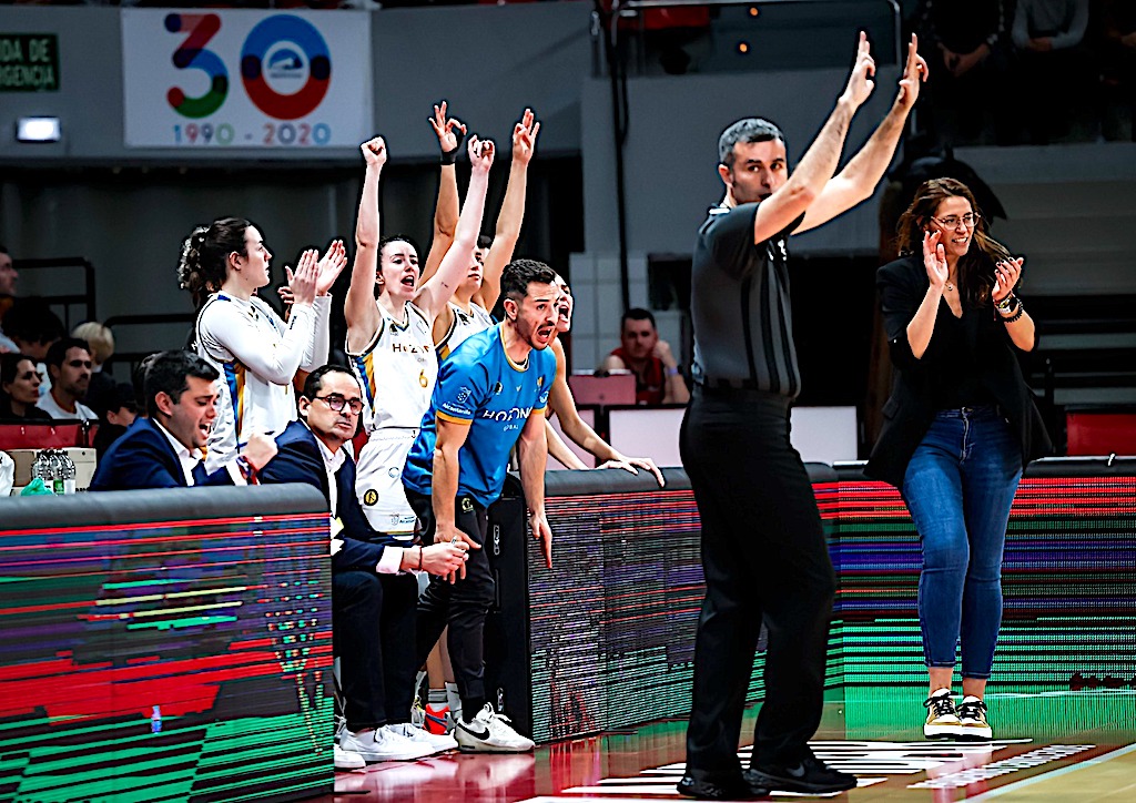 El partido comenzaba con ambos conjuntos muy erráticos en ataque gracias a la intensidad defensiva que imperaba en la pista del Príncipe Felipe. Pasaban tres minutos de juego cuando Abby Bishop abría el marcador con un triple que era rápidamente contestado por Diallo en la zona rival. Carmen Grande hacía su debut anotando su primera canasta como jugadora jairista a los pocos segundos de entrar en pista, pero Tanaya Atkinson seguía dominando en transición y anotaba su cuarto punto consecutivo. Casademont Zaragoza conseguía una ventaja de cinco puntos a falta de dos minutos para finalizar el cuarto por medio del acierto exterior de Petra Holesinska. El primer periodo finalizaba con 18-12 en el luminoso.