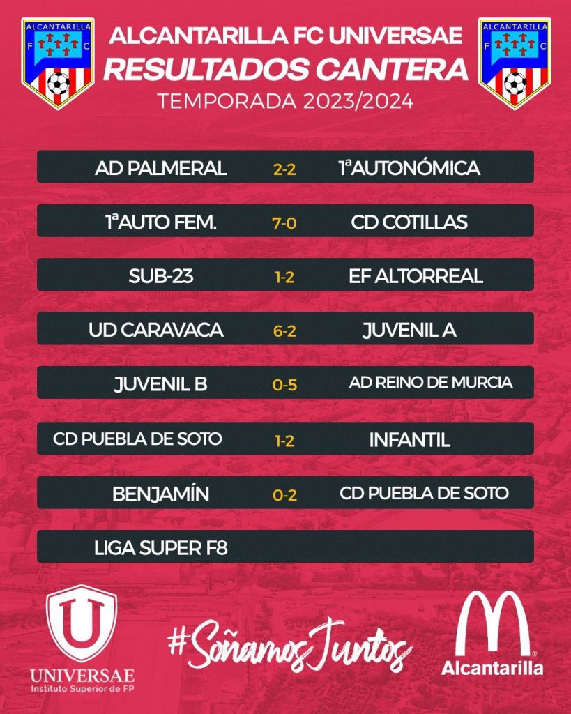 Los partidos fuera de casa no sientan bien a los equipos de competición del Alcantarilla FC Unviersae. De los tres que han visitado a otros equipos, dos han perdido y uno ha vuelto con empate. La única victoria, una sonora goleada de 7-0, fue de las jugadoras del Primera Autonómica Femenina. El próximo fin de semana tendremos a tres equipos jugando en Alcantarilla y a las chicas del Primera jugando fuera.