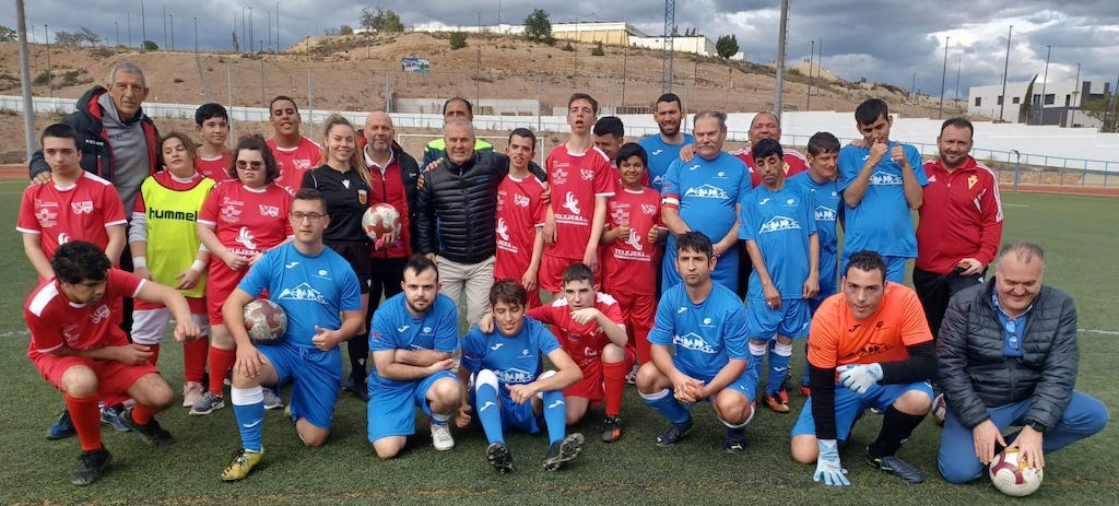 Equipos de Súper Fútbol 8 de del Alcantarilla FC Universae y Real Murcia, que jugaron este viernes. Foto: AFC