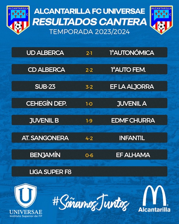 En la cantera no hubo tampoco mucha suerte. El único equipo que ganó fue el Sub 23, que venció en casa por 3-2 frente al EF La Aljorra. Los demás (Benjamín, Infantil, Juvenil A y Juvenil B) también perdían.